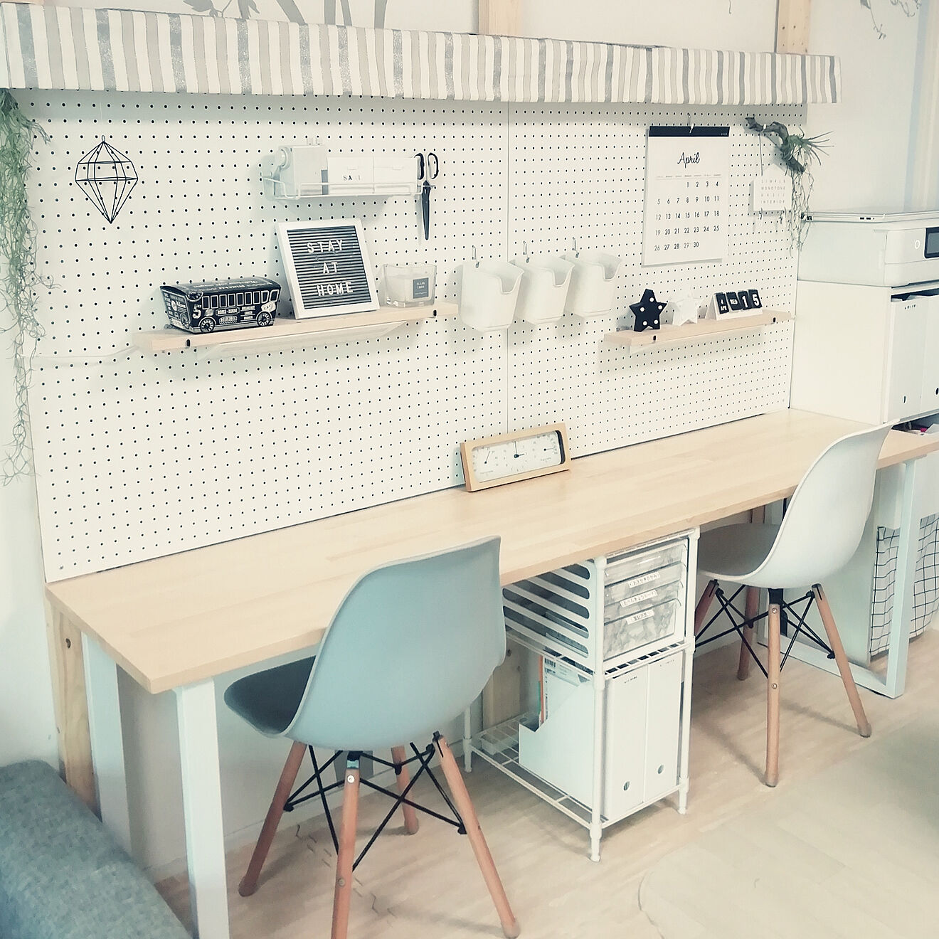 家里的某个角落加个隔板做书桌也不错,搭配洞洞板和装饰品,很有办公气氛。